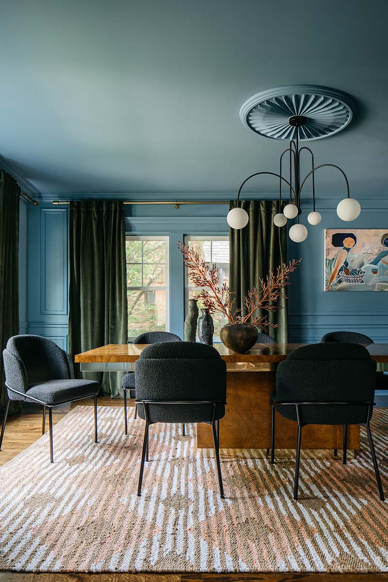 “The inspiration for this room was my last trip to my friends, the Stratton's, in Breckenridge, Colorado. Their love of horses only rivals their love of gathering friends for a dinner party at their Colorado lodge, they have a rather traditional taste but are not strangers to a fun piece of decor in their homes.”